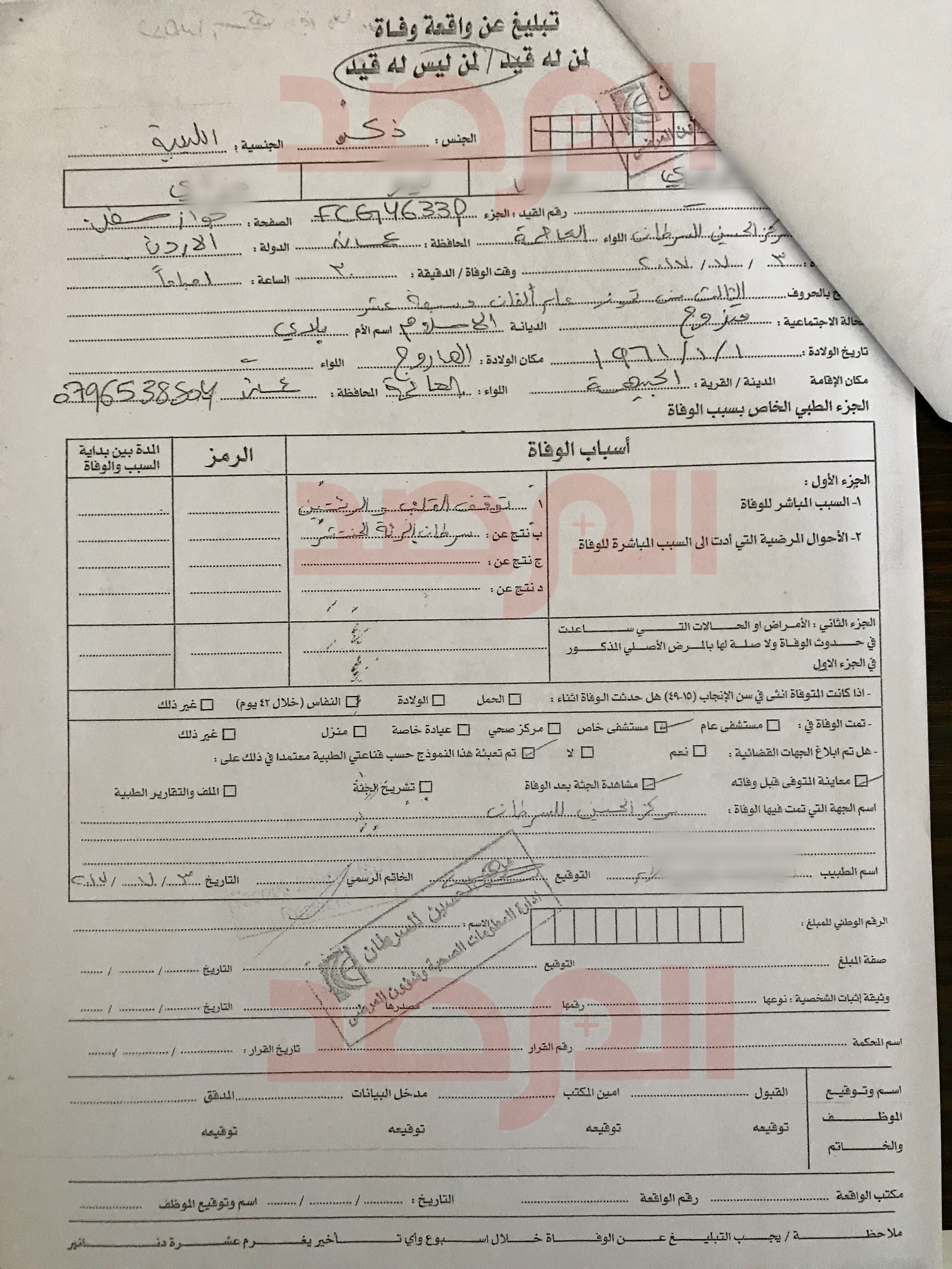 ج – هذا الشاب من الجنوب و قد إنتهى ملفه من الناحية القانونية و الأمنية و الاجرائية يوم الخميس الماضي و تأكدت السلطات بأنه منتحر دون وجود شبهة جنائية بالموضوع ، خاطبنا وزارة الخارجية بالبيضاء وخاطبنا بعلاقاتنا اشخاص في المنطقة الغربية و تعرفوا على اسم الشخص و زودناهم ببياناته على أن نتلقى رد بالمطلوب بين ترحيل جثمانه أو دفنه فى الأردن ، حتى اليوم لم نتلقى رد ، القنصلية أن لم تتلقى رد يوم غد ستقرر دفنه فى عمان.
