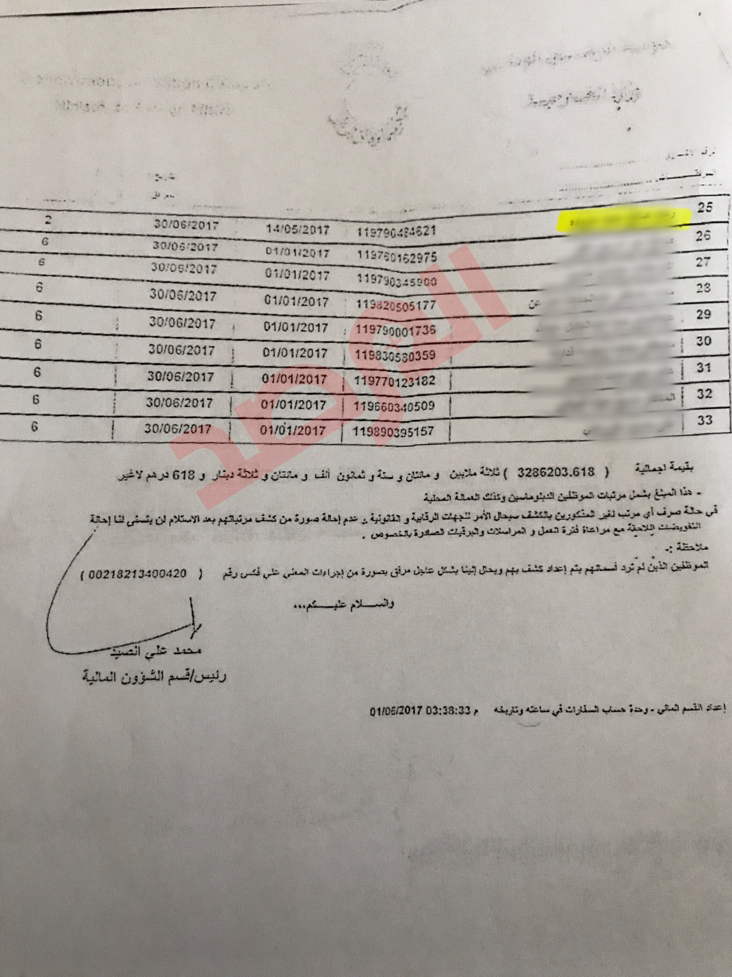 ج – حكومة الوفاق أرسلت مرتبات آخر 6 اشهر من يناير الى يونيو 2017 مع العلم بأن بعض المستفيدين من هذه المرتبات باشروا عملهم قبل نهاية شهر مارس ومنهم من لم يدخل الاردن منذ سنة ، قائمة المرتبات شملت أيضاً أسماء 7 موظفين غير تابعين لنا و لم نراهم في الساحة ولا ندري من أين يعملون . هناك أسماء أخرى أسقطت من القائمة لموظفين فعليين لأسباب هم يعرفونها جيداً . و هذه الوثائق نضعها امامكم للرأي العام !