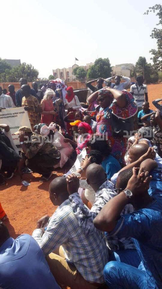 و قد جسد المتظاهرون فى لقطات وثقتها عدسات الصحافة المحلية والدولية فى باماكو لقطات تمثيلية لطريقة ” الرق والنخاسة ” فيما روى عائدون منهم الى بلادهم تجربتهم القاسية فى ليبيا .