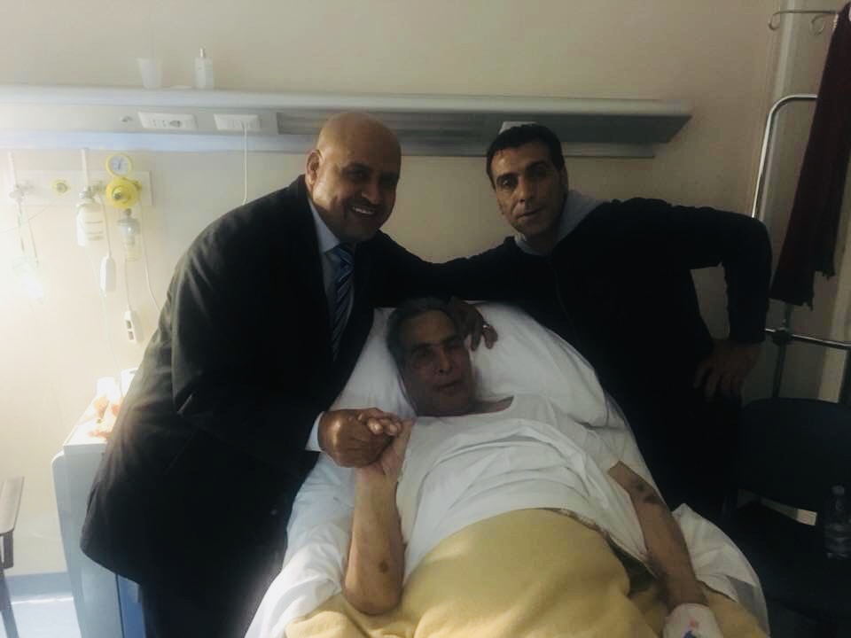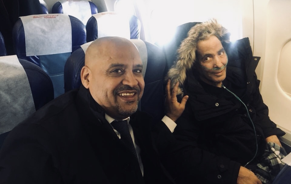 و قد رافق الفنان الكبير فى رحلته عضو مجلس النواب عن منطقة الشاطئ النائب عبدالهادي الصغير الذي أشرف بدوره إتمام إجراءات حسن من تونس حتى وصوله الى المستشفى فى روما .