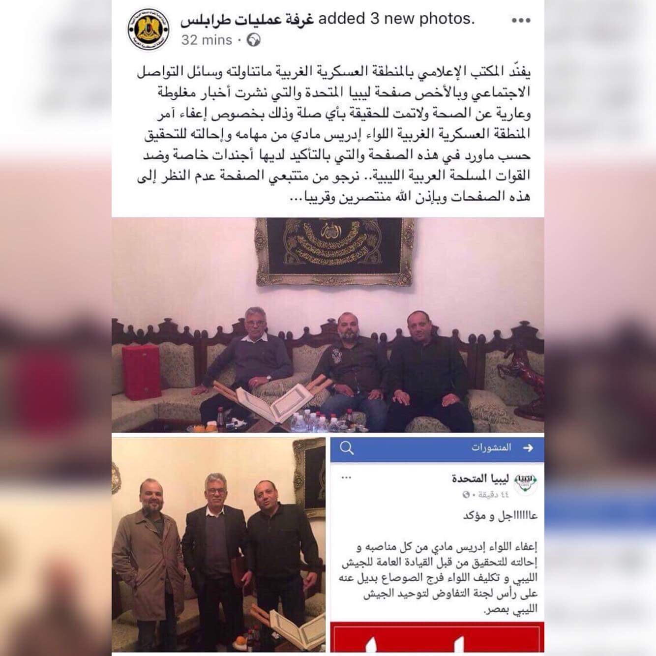المنطقة العسكرية التابعة للقيادة العامة اعتبرت أن الصفحة الناشرة للخبر لها أجندات خاصة ضد القوات المسلحة العربية الليبية ، مطالبةً متتبعي الصفحة عدم متابعة مثل هذه الصفحات .