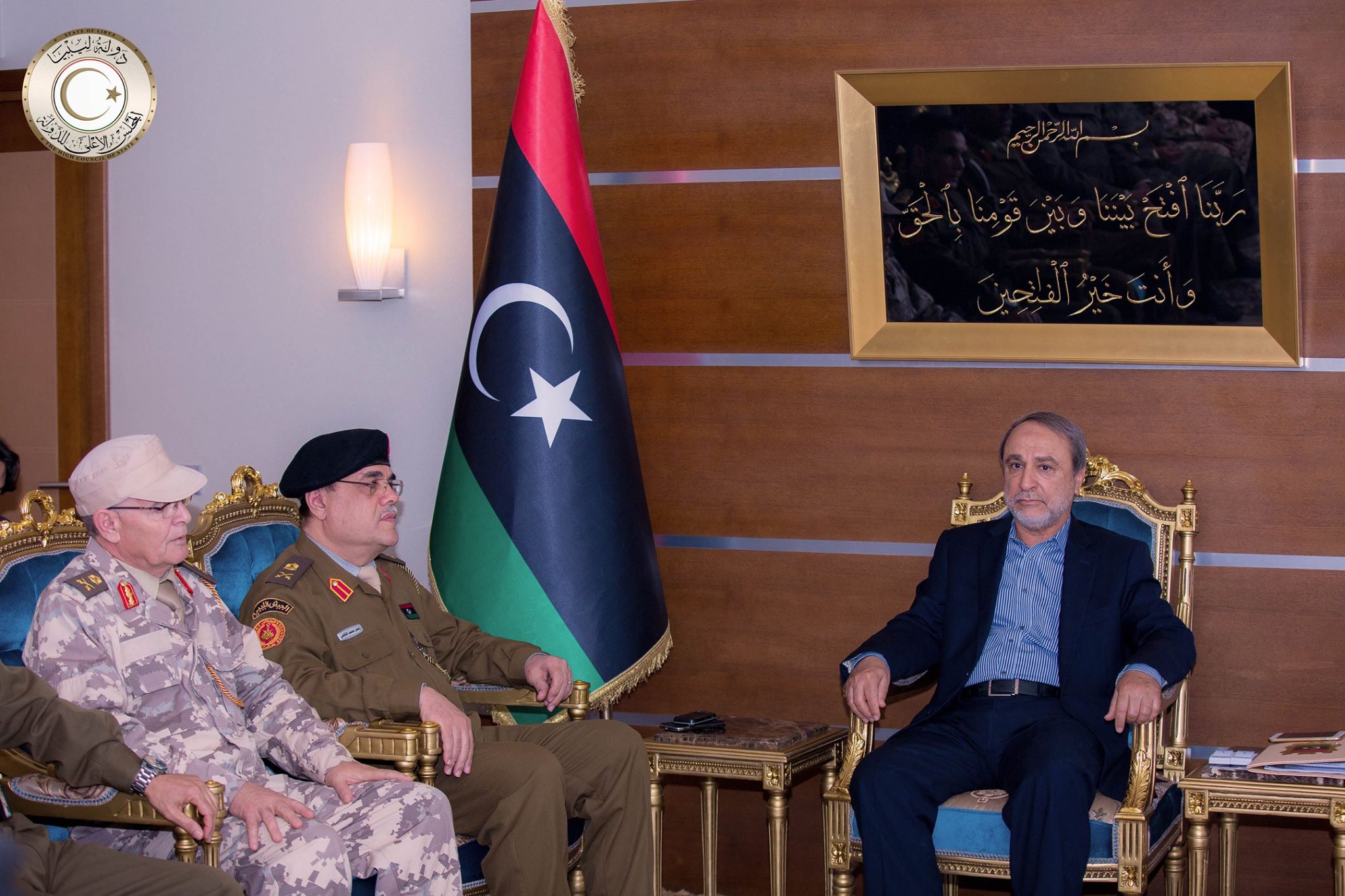 ليبيا – استقبل رئيس مجلس الدولة عبدالرحمن السويحلي اليوم الثلاثاء وفدًا من قادة وضباط وآمري محاور عملية البنيان المرصوص فى مقدمتهم آمر الغرفة اللواء “بشير القاضي” بحضور رئيس وعدد من أعضاء لجنة دعم الأمن والإستقرار ومكافحة الإرهاب ورئيس لجنة المصالحة الوطنية بالمجلس .