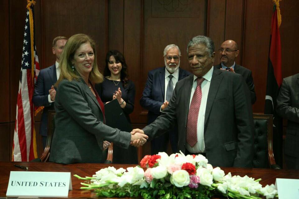 ليبيا – أعلنت وزارة خارجية الوفاق عن التوقيع على وثيقتين أمس الجمعة في مقر السفارة الليبية بالعاصمة تونس بحضور وزير الخارجية محمد الطاهر سيالة وذلك في إطار التعاون بين ليبيا والولايات المتحدة الأمريكية.