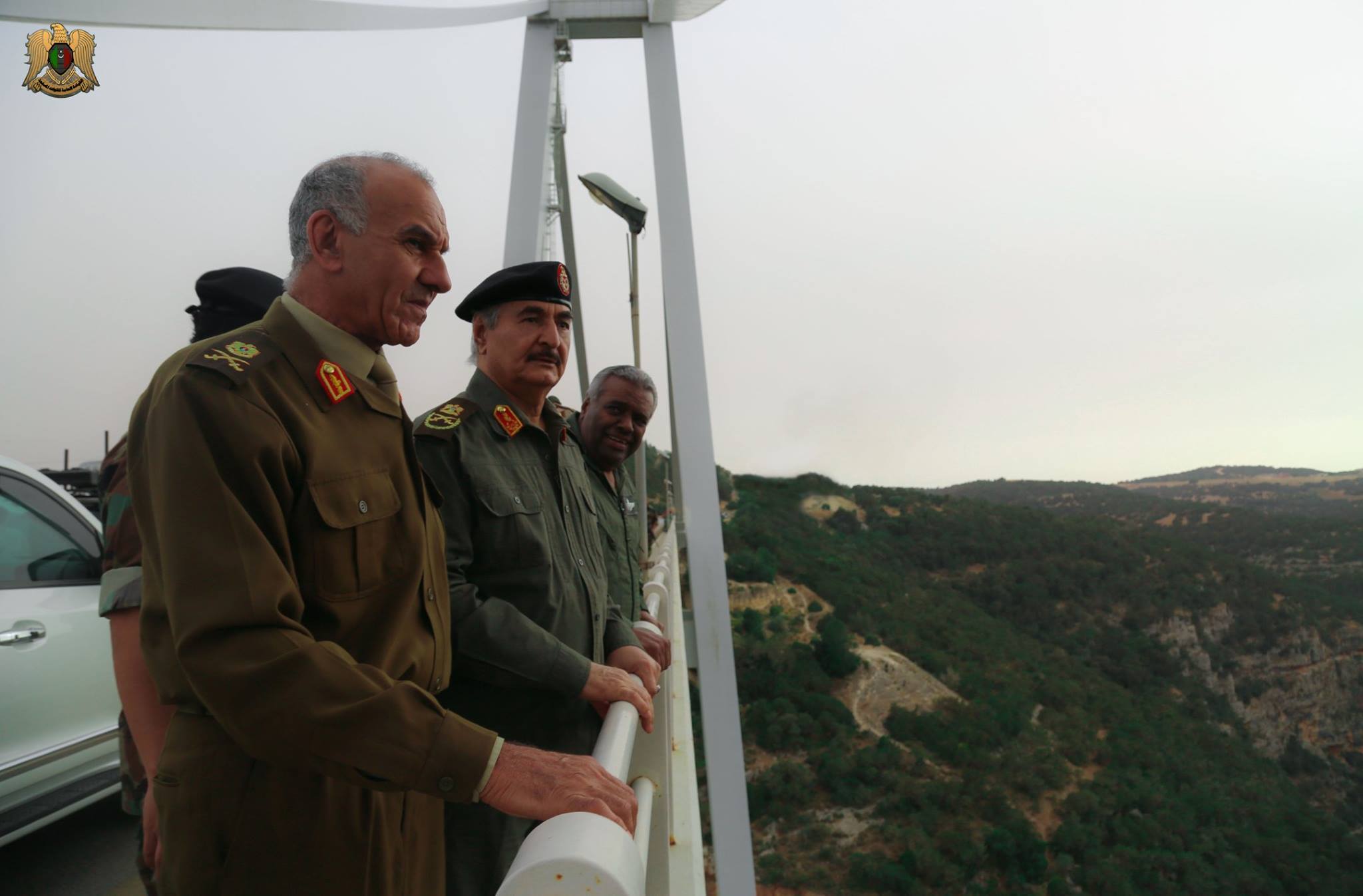 كما تفقد القائد العام للجيش المدن والمناطق المكونة للجبل الأخضر التي مر بها موكبه على طول الطريق المؤدية لغرفة عمليات عمر المختار المتاخمة لدرنة.