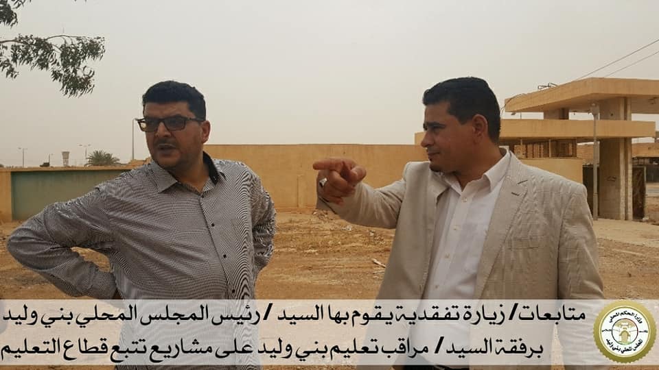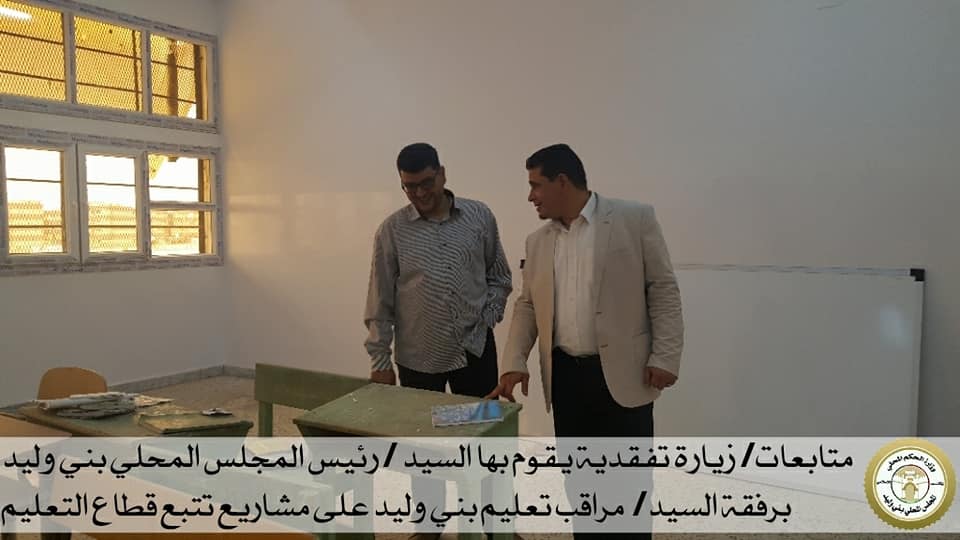 ليبيا – أجرى رئيس المجلس المحلي بني وليد علي النقراط أمس الثلاثاء زيارة تفقدية برفقة مراقب تعليم بني وليد خالد أبوحمرة إلى الإنشاءات والصيانات التي تقوم بها مراقبة التعليم في عدد من المدارس.