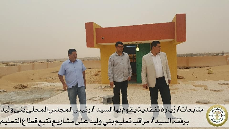 مراقب تعليم بني وليد أكد وفقاً للمكتب الإعلامي التابع للبلدية على إستمرار الصيانة وقرب الإنتهاء منها في مدرسة سناء محيدلي و مباني المخازن و غيرها من المدارس لإستقبال عودة الطلبة لمدارسهم.