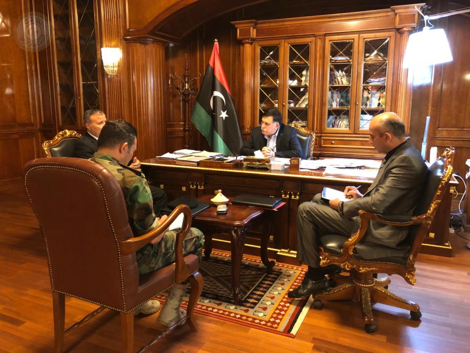 ليبيا – اجتمع رئيس المجلس الرئاسي فائز السراج بصفته “القائد للأعلى للجيش” اليوم السبت مع امراء المناطق العسكرية التابعة للرئاسي اللواء محمد الحداد آمر المنطقة الوسطى، واللواء أسامة الجويلى آمر المنطقة العسكرية الغربية، واللواء عبد الباسط مروان آمر منطقة طرابلس العسكرية.