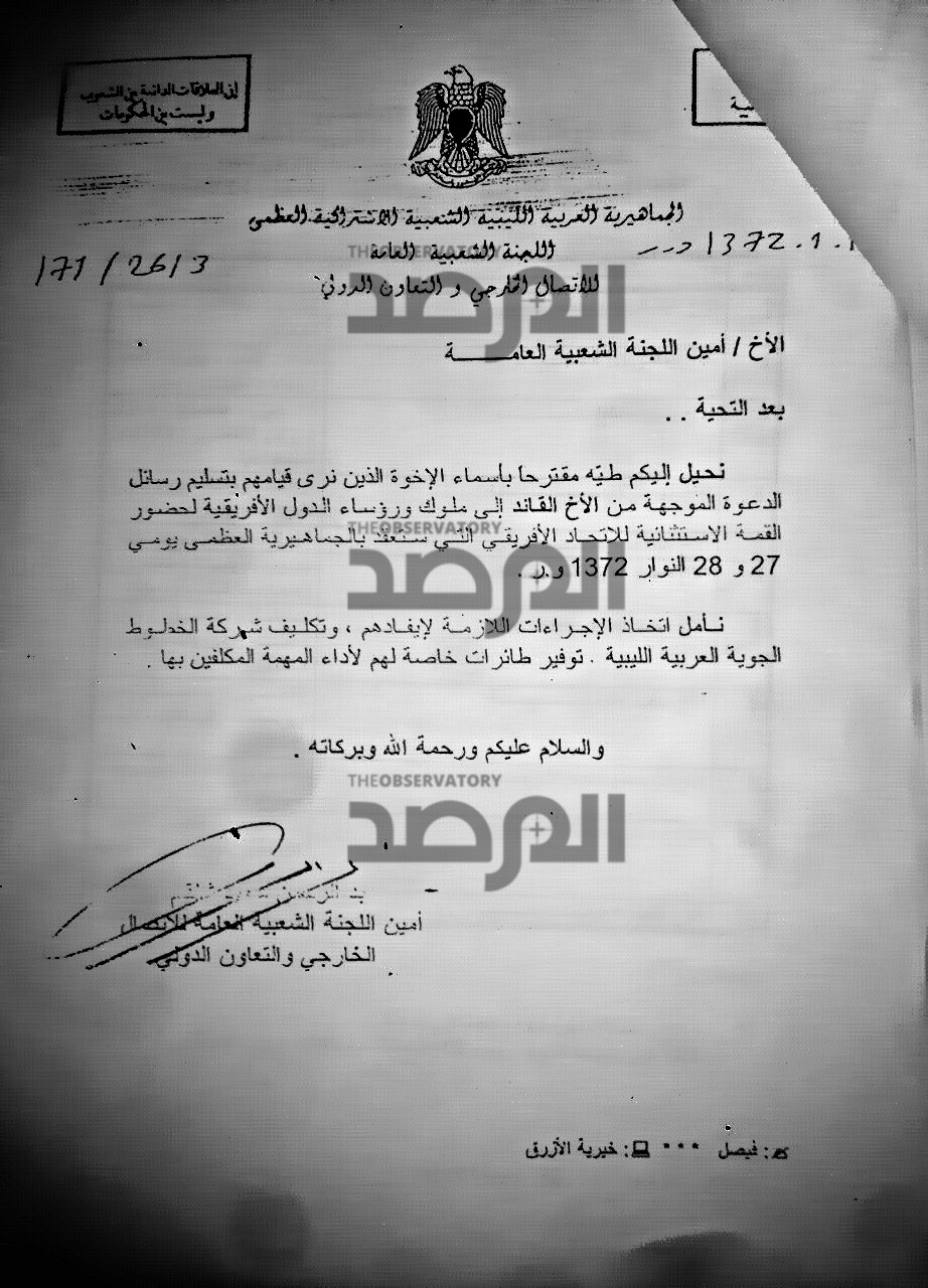 وبالعودة الى تقرير ديوان المحاسبة الاخير والذي سبقه فقد اشار الى انفاق حكومة الوفاق وخارجيتها لعشرات الملايين على ايجار الطائرات الخاصة ، اما فى هذا المستند الذي يعود تاريخه ما بين سنتي 2004-2005 يحيط وكيل الوزارة ، الوزير ، بأن رئاسة الوزراء وافقت على عرض وزارة الخارجية بشأن ايفاد عدد من موظفيها لدعوة زعماء افارقة لحضور قمة دعت لها ليبيا ، لكن الموافقة كانت مشروطة بأن تكون نفقات الطائرات الخاصة المعدة لنقل هؤلاء خصماً من ميزانية القمة لا من ميزانية الدولة ، فى الوقت الذي يسرف فيه الرئاسي وخارجيته على هذا الغرض من ميزانية الدولة بل ومن بند الطوارئ !