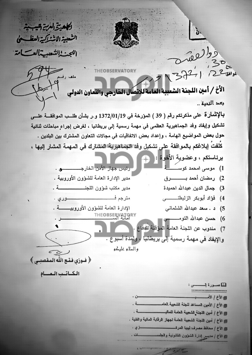 كما ان الاجراء فى وزارة الخارجية كان يحتم على وكيل الوزارة حينها فتحي المقصبي ان يخاطب نظيره فى وزارة المالية بحجم مصروفاتهم من العهد على المسؤولين والوزراء معززة باذونات الصرف وواصلات الاستلام وغرض السفر واسبابه ، كما هو فى هذا المستند .