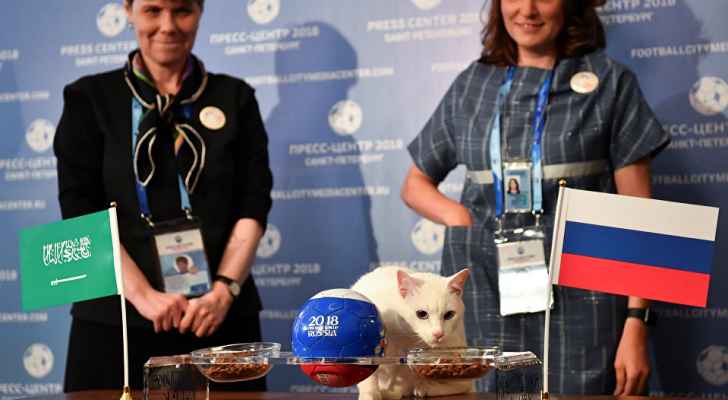 واختار القط أخيل هذه المرة وبعد برهة قليلة من التردد وعاء روسيا ليرجح حسب حسه كفة الدب الروسي في المباراة الافتتاحية للمونديال ضد نظيره السعودي غد الخميس على ملعب “لوجنيكي” في العاصمة موسكو.