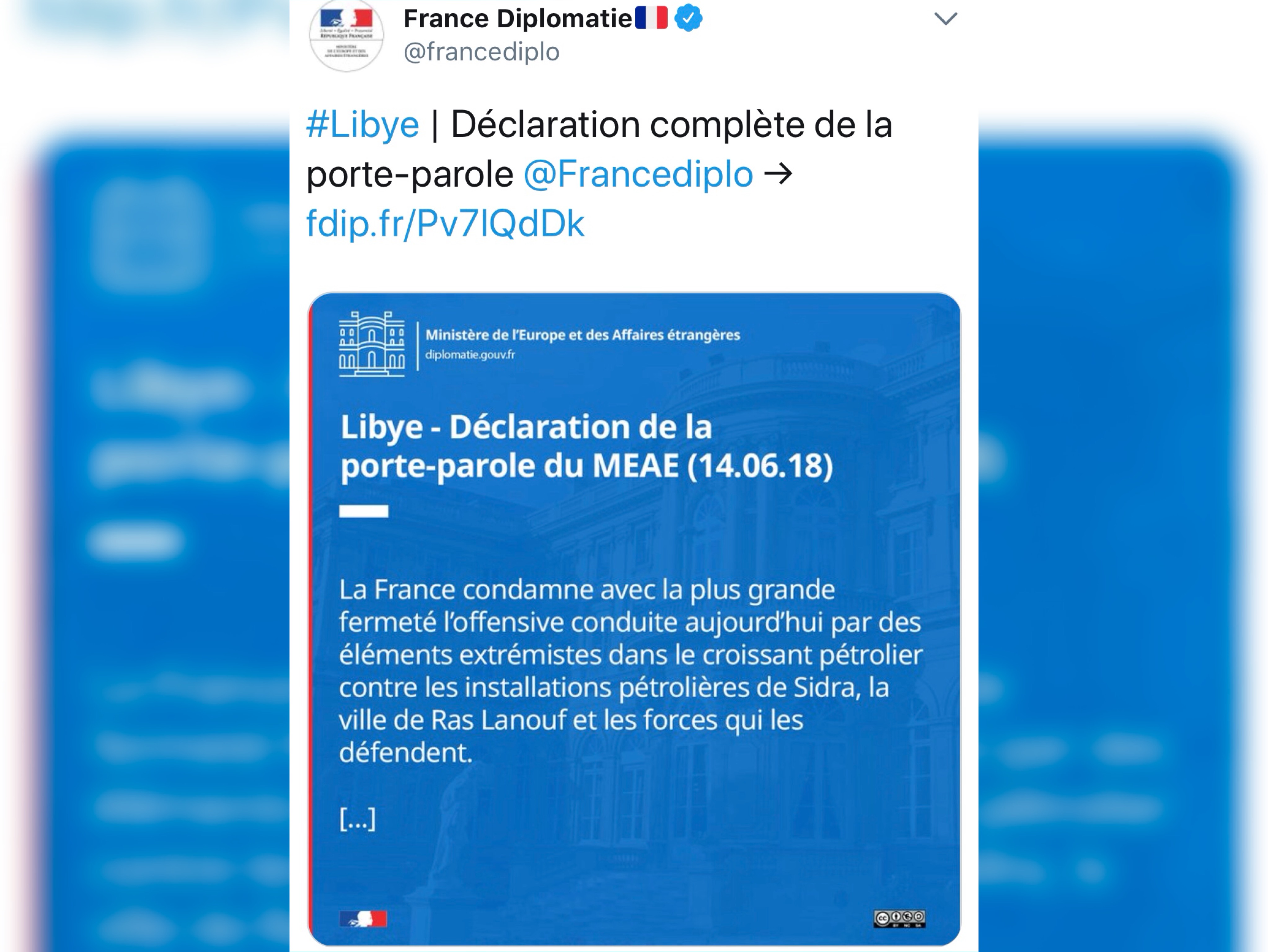 ليبيا – نددت وزارة الخارجية الفرنسية وبأشد العبارات بهجوم قوات جضران والمتحالفين معها من سرايا الدفاع عن بنغازي والمعارضة التشادية على منطقة الهلال النفطي .
