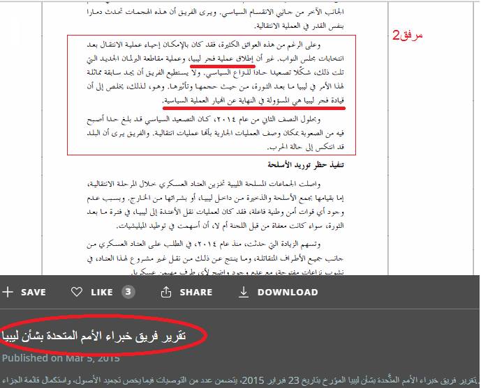 وهي وثيقة ممهورة بختم الأمم المتحدة فى شكل تقرير صادر عن لجنة خبراء مكلفة منها العام (فبراير 2015) .. حيث تؤكد هذه الوثيقة بأن عملية فجر ليبيا شكلت التالي :