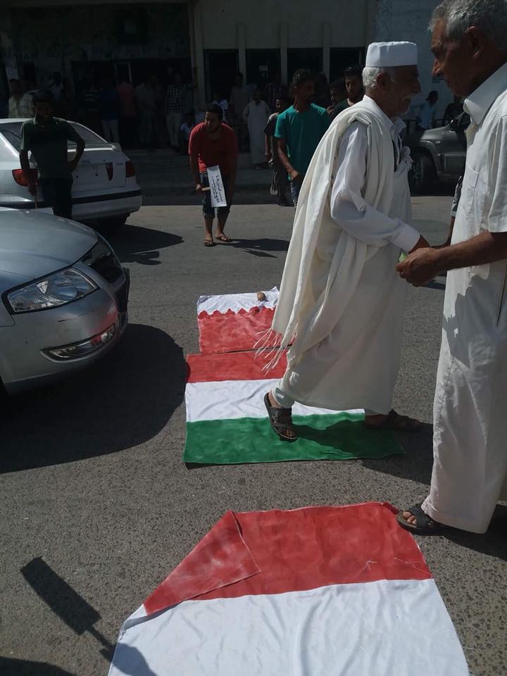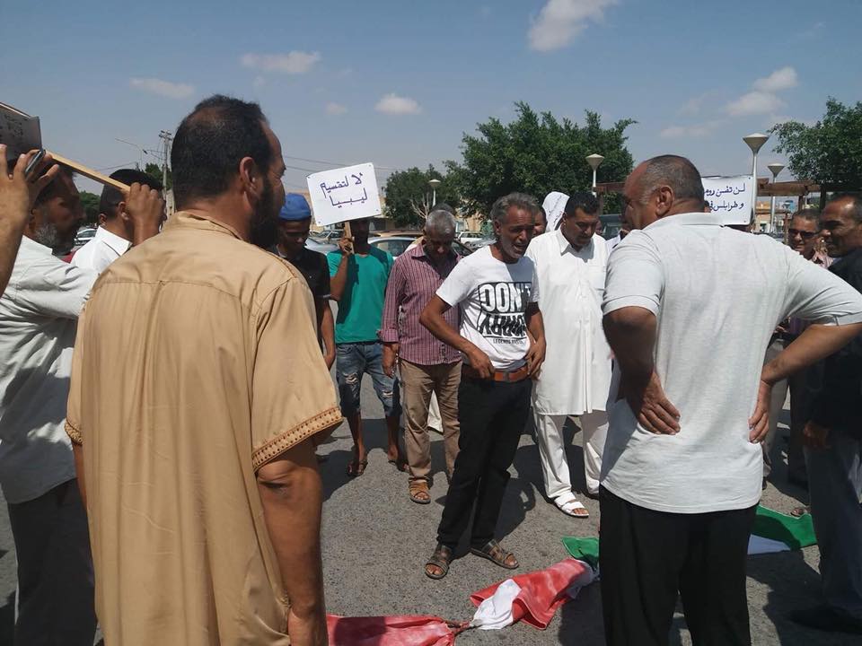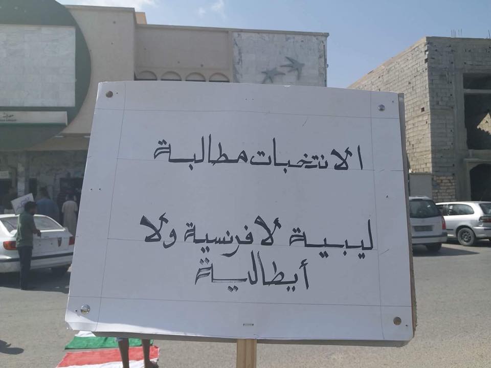 ورفع المتظاهرون صوراً لشيخ الشهداء عمر المختار ولافتات ترفض تقسيم ليبيا وتعتبر أن الانتخابات مطلب ليبي لا إيطالي ولا فرنسي وأحرقوا ألاعلام الايطالية تعبيراً على رفضهم لتدخل السفير الايطالي في الشؤون الداخلية لليبيا.