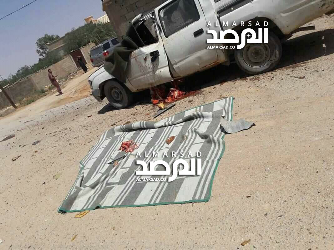 وقال مصدر أمني محلي من مدينة بن وليد لـ المرصد إن هذه الغارة إستهدفت السيارة بحي الصيعان فى منطقة الظهرة وسط المدينة بالقرب من مسجد الشهيد واصفاً إياها بالضربة الدقيقة التي لم تؤدي إلا لقتل الهدف وتدمير سيارته.