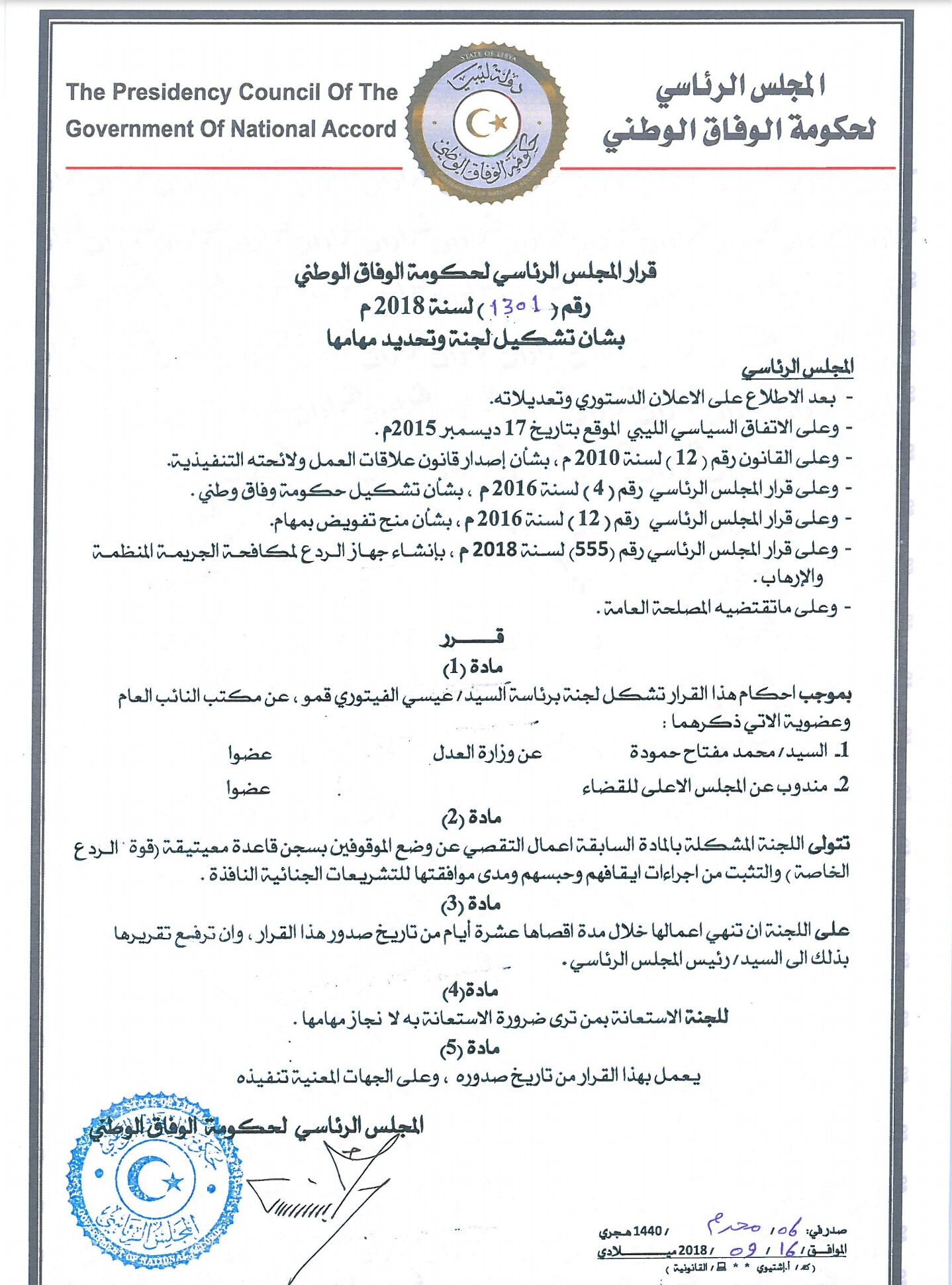الجمعية الليبية لأعضاء الهيئات القضائية أوضحت في بيانها الذي تلقت المرصد نسخة منه أن القرارات الصادرة عن المجلس الرئاسي من الناحية الشكلية والاختصاص قرارات تحمل في طياتها إنتهاك لمبدأ استقلال القضاء بسبب صدورها بطريقة مخالفة للإعلان الدستوري المؤقت والتشريعات الليبية النافذة .