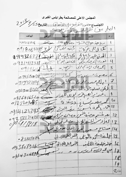 استناداً على الاجتماع الذي تم مساء الجمعة الحادي عشر من شهر محرم 1440 هـ الموافق 21 سبتمبر 2018 في بلدية القره بوللى بمنطقة القويعة وبحضور ممثلين عن مدينة طرابلس وترهونة وهم :