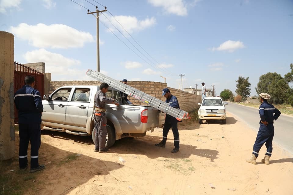 ليبيا – شاركت دائرة توزيع الاصابعة لليوم السابع على التوالي أمس السبت في العمل مع دائرة توزيع بئر الأسطى ميلاد بإدارة توزيع طرابلس في صيانة الاضرار التي لحقت بمكونات شبكة التوزيع بوادي الربيع وعين زارة جراء اشتباكات طرابلس .
