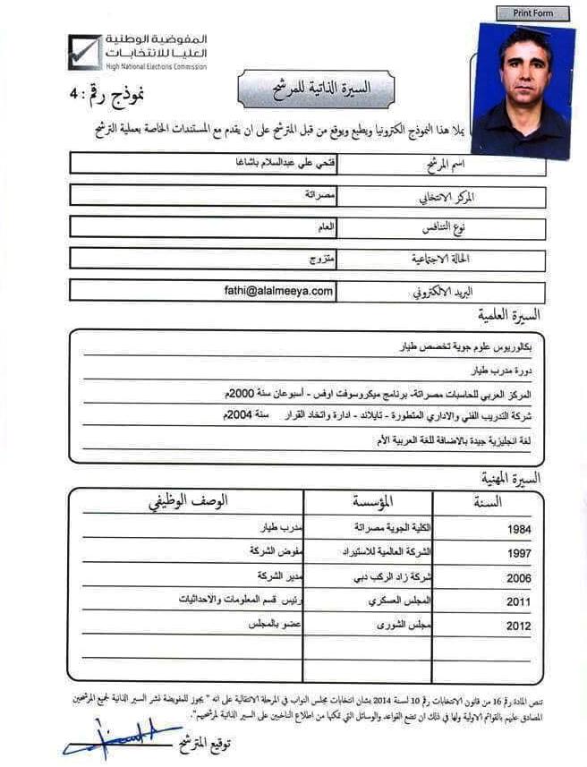 وبالحديث عن مجلس النواب ، فقد ترشح باشا آغا لإنتخابات المجلس وفاز بمقعد عن دائرة مصراتة وكتب فى سيرته الذاتية التي قدمها عند ترشحه بأن مؤهله العلمي هو طيار متدرب سابق إضافة لعضويته بمجلس شورى المدينة ورئيس قسم الاحداثيات والمعلومات والتنسيق مع حلف الناتو سنة 2011 إضافة لإدارته وإمتلاكه شركات تجارية الأمر الذي قد يتعارض مع وظيفته الحالية وزيراً للداخلية إضافة لكونه عضو غير مستقيل من مجلس النواب .