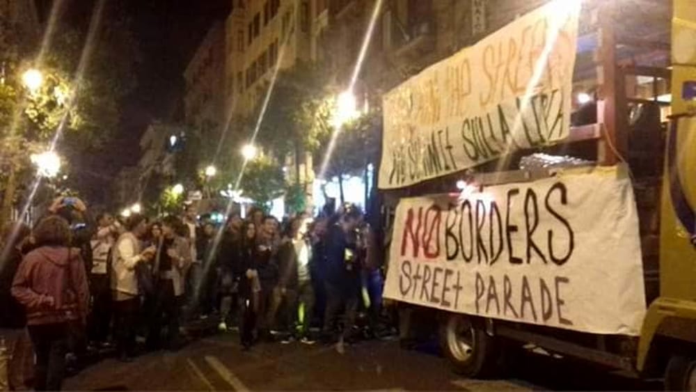 منظمي التظاهرة التي تحمل لافتات “لا للقمَّة” قالو بحسب وكالة”آكي” الإيطالية إن الإجراءات الأمنية شلّت وسط المدينة الذي عزل بسبب الحدث ولسد الاحتياجات الخاصة لأعضاء وفود الدول المدعوة التي تمارس الهيمنة العسكرية في منطقة المتوسط.