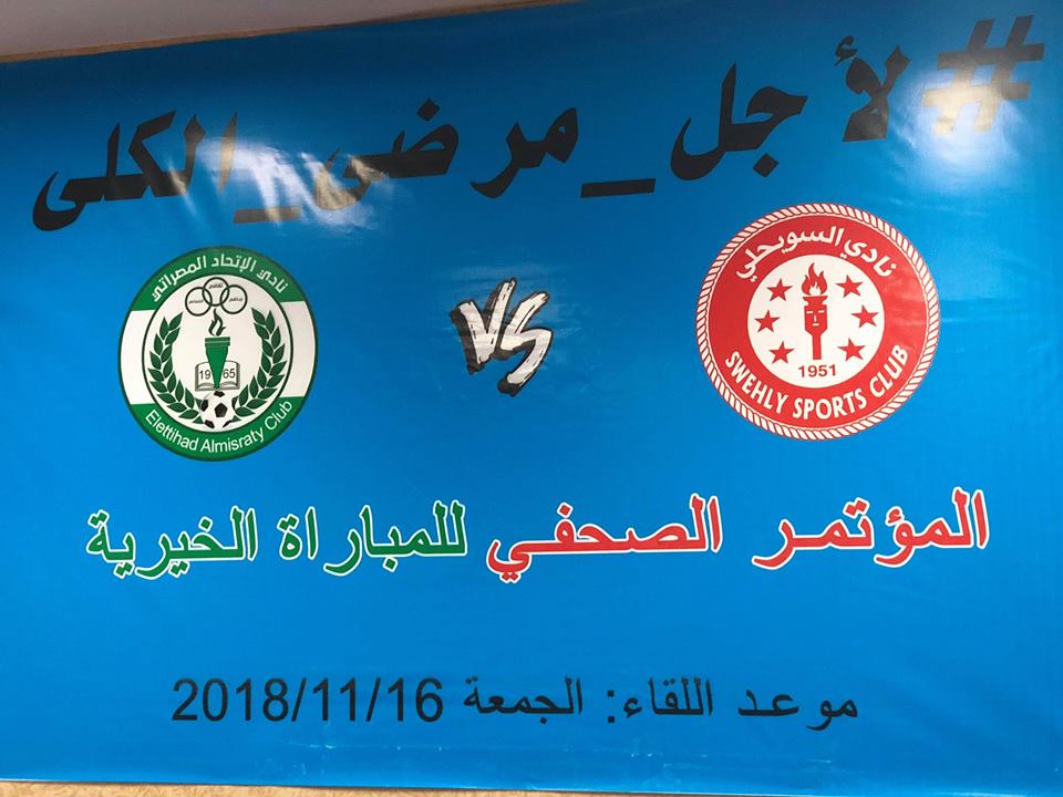 وفى مؤتمر صحفي عُقد فى مصراتة أيضا ، قال مسؤولي هاذين الناديين إن الهدف من المبارة هو عمل خيري لتتبرع به الناس من مالها الخاص لمرضى الكلى والسرطان مقابل حضورهم وإشتراء التذاكر وبأن هذا ما دفعهم لقبول فكرة إقامة هذا المنشط معربين عن تفاجئهم لوجود دعوة من طرف لم يسموه لمعيتيق لكي يحضر اللقاء.