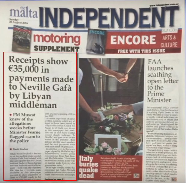 وفى وقت سابق أيضاً نشرت صحيفة إندبندت المالطية المحادثات وقالت بأن ” جافا ” تحصل عن مالايقل عن مابين 35 إلى 38 ألف يورو مقابل إستخراج تأشيرات علاج ليبية ومئات آلاف اليوروهات الأخرى مقابل تأشيرات وإقامات .