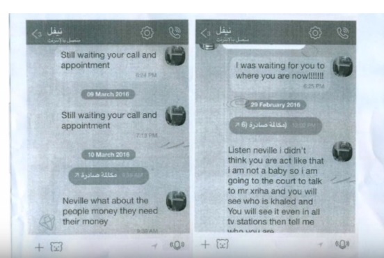 وتظهر المحادثات وهي باللغة الإنجليزية كيف ان الليبي بن نعسان كان يقول لـ ” جافا ” فى محادثة بينهما عبر تطبيق التواصل ” فايبر ” أن الناس الذين دفعوا الأموال ينتظرون الحصول على تأشيراتهم ، وقد تم تقديم هذه المحادثات الى الشرطة المالطية التي تحقق فى الموضوع بعدما تصاعد عبر مختلف وسائل الإعلام المالطية !