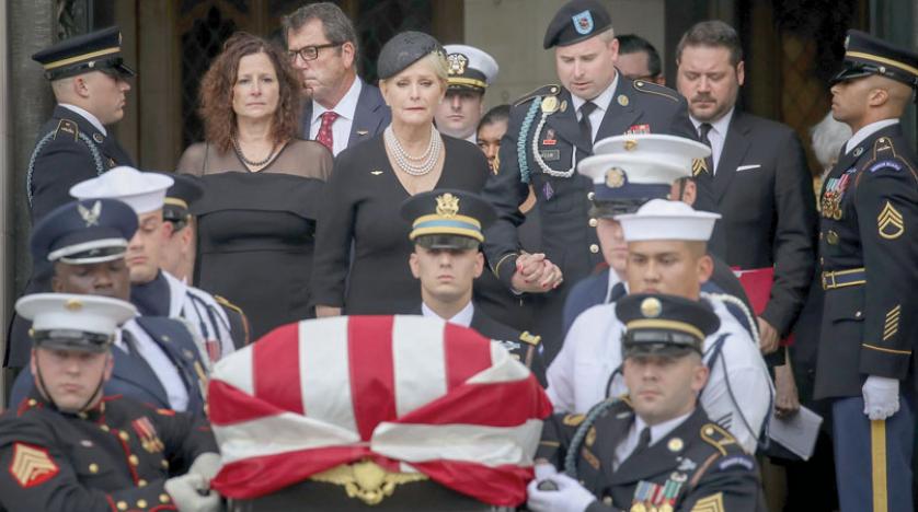 وألقى المتحدث باسم مجلس النواب، الجمهوري، بول رايان، كلمة في مراسم التشييع، بحضور نائب الرئيس الأمريكي الحالي مايك بنس.