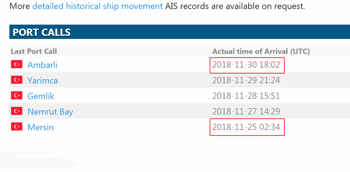 أما عن مسارها الذي وصلت منه إلى ليبيا فقد تبيّن بأنها أبحرت يوم 25 نوفمبر الماضي من ميناء مرسين فى جنوبي تركيا ومنه إلى عدة موانئ تركية أخرى حتى وصلت إلى ميناء ” إمبرلي ” الواقع فى الشطر الأوروبي من إسطنبول إلى الغرب من مطار ” أتاتورك الدولي ” .