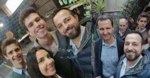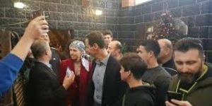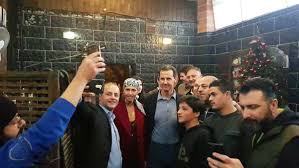 وأظهرت صور تناقلها مدونون ومغردون سوريون على مواقع التواصل الاجتماعي، الرئيس الأسد وزوجته وأبناءه خلال زيارتهم كنيسة القرية، وحولهم مواطنون يلتقطون الصور.