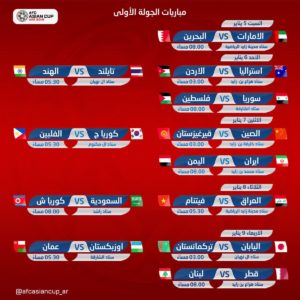 أبوظبي – تنطلق النسخة الـ17 من بطولة كأس آسيا لكرة القدم غدا السبت في الإمارات العربية المتحدة وتستمر المنافسات من الـ5 من يناير الحالي حتى مطلع فبراير القادم.