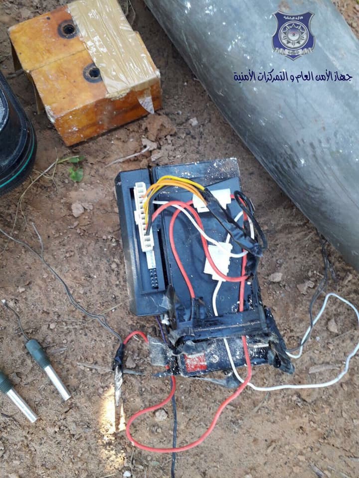 وأوضحت الصورة التي نشرها جهاز الأمن العام وجود حقيبة متفجرة موصولة ببطارية وصاعق للتفجير ومن طرفها الآخر موصولة بقنبلة هي عبارة عن قذيفة ثقيلة تستخدم فى الدبابات والمدفعية .