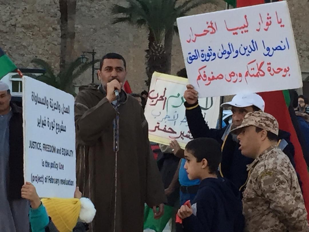 كما ندد المتظاهرون بالقائد العام للجيش المشير خليفة حفتر وبرئيس المجلس الرئاسي فائز السراج وبالمبعوث الأممي غسان سلامة ، فيما رددوا شعارات مؤيدة للمفتي الصادق الغرياني وأخرى تطالب بإطلاق سراح عناصر إرهابية مسجونة لدى النائب العام في طرابلس واصفينهم بـ ” الأحرار ” .