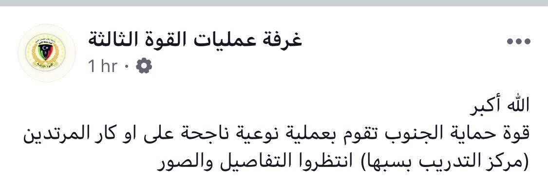 وأضحت الكتيبتين عبر مكاتبهم الاعلامية الرسمية على موقع التواصل الاجتماعي “فيسبوك” اليوم السبت بأن رجال القوات المسلحة قد قتلوا في مواجه مباشرة بالرصاص ، ونفت الكتيبتين رواية المنطقة العسكرية سبها بأن هناك جنوداً قد قضوا نحبهم ذبحاً بالسكاكين في هذا الهجوم .
