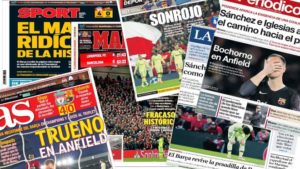 أما صحف مدريد، فأعربت عن صدمتها أكثر من ازدرائها بالغريم التقليدي. وكتبت “آس”، “صدمة في ليفربول”، مضيفة “كارثة جديدة لبرشلونة في دوري الأبطال والثلاثية تتبخر” في إشارة لما كان يسعى إليه الفريق الكاتالوني المتوج بلقب الدوري الإسباني، لإحراز ثلاثية الدوري والكأس المحليين ودوري الأبطال تكرارا لإنجاز عامي 2009 و2015.