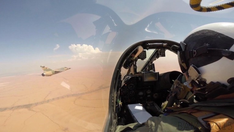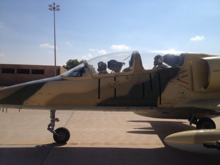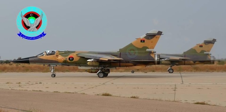 صورة لطائرتي الميراج نشرتها الكلية الجوية مصراتة عبر مكتبها الإعلامي العام الماضي تتطابق مع شكل الطائرات التي يظهر فيها المرتزقة