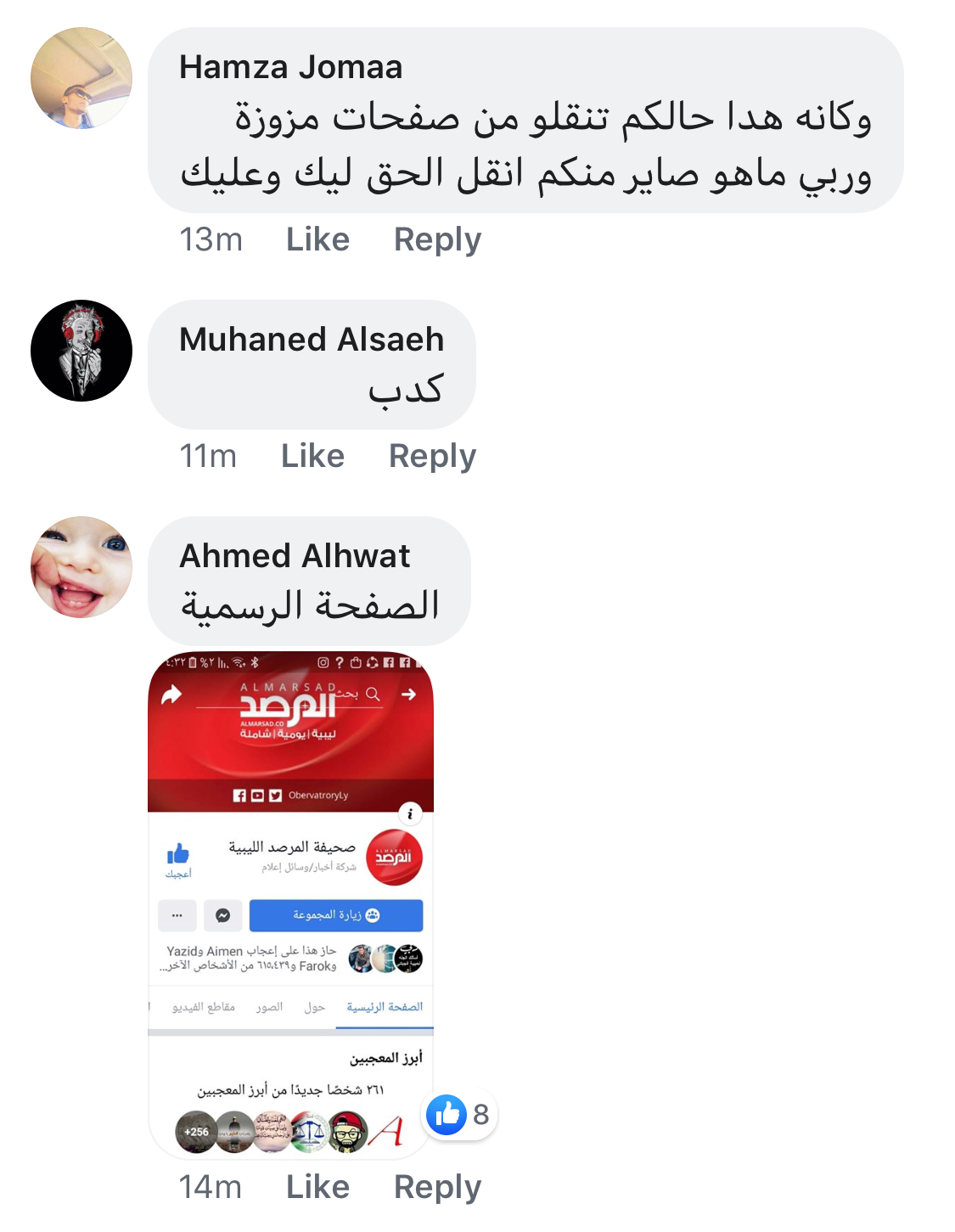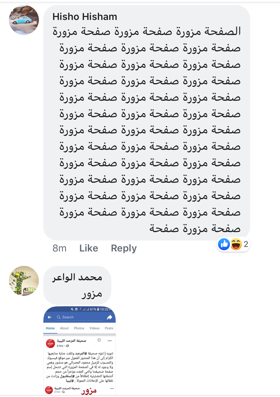 كما يضع هذا التصرف رغم التنبيهات المتكررة علامة إستفهام أخرى عن هوية وحقيقة الأشخاص الذين يديرون الصفحات المزورة ومن بينها صفحة المرصد الوهمية بسبب إصرار جهات حكومية في طرابلس على إعادة ترويج هذا الكذب بما بات يُقوي وبشكل فاضح الدلالات المتزايدة حول وقوف هذه الجهات خلف هؤلاء الأشخاص .