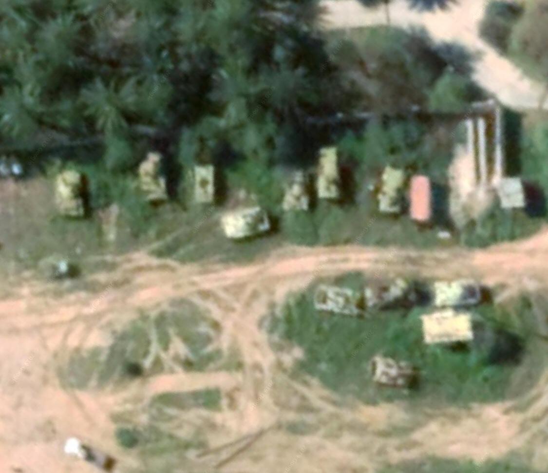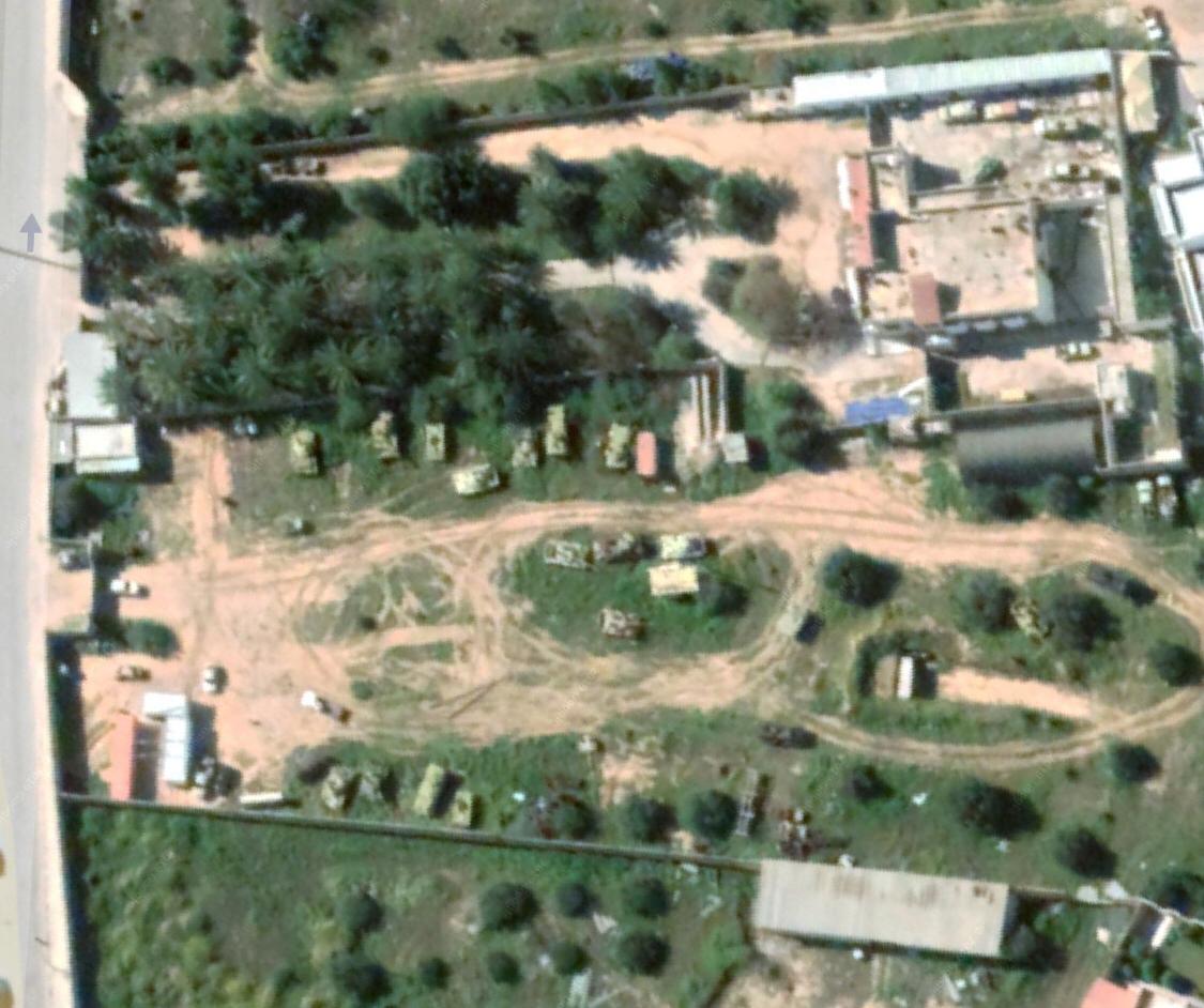 وبعكس ما أُعلن عن أن الموقع المستهدف هو موقع مدني ، تثبت هذه الصور بأنه عسكري صرف بل أن بعض الدبابات والمدرعات مخزنة بين الأشجار لإعتقاد المتطرفين من مشغلي هذا المعسكر بأنها أصبحت مموهة ومخفية .