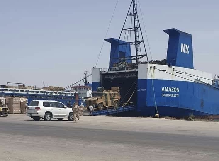وبيّنت الصور ومقاطع فيديو نشرها لواء الصمود بقيادة المعاقب دوليا صلاح بادي عبر صفحته الرسمية على فيسبوك لحظة إنزال السفينة لشحنتها من المدرعات البالغ عددها تقريباً بحسب المقاطع والصور قرابة 40 مدرعة متوعدين بالقتال بها وإحداث فرق على الأرض .