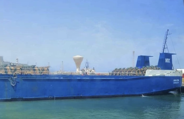 وبيّنت الصور ومقاطع فيديو نشرها لواء الصمود بقيادة المعاقب دوليا صلاح بادي عبر صفحته الرسمية على فيسبوك لحظة إنزال السفينة لشحنتها من المدرعات البالغ عددها تقريباً بحسب المقاطع والصور قرابة 40 مدرعة متوعدين بالقتال بها وإحداث فرق على الأرض .