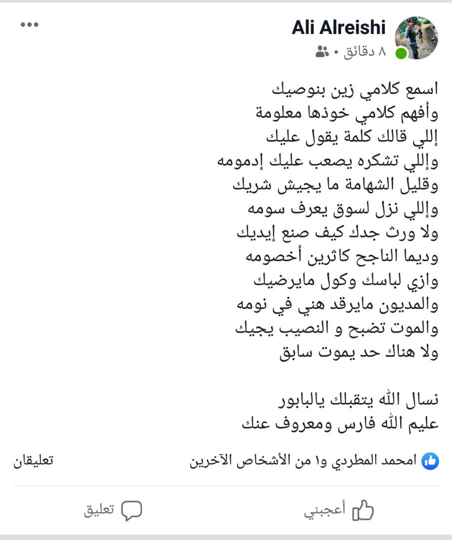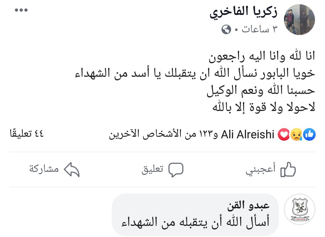 ولأول مرة منذ عامين ، نشر الربيعي منشوراً عبر حسابه على فيسبوك الذي كان قد توقف عن النشر مطولاً نعى فيه رفيقه صلاح المقصبي وهو أحد المطلوبين الفارين من طبرق إلى مصراتة حيث بقية عائلته المنحدرة من هذه المدينة .