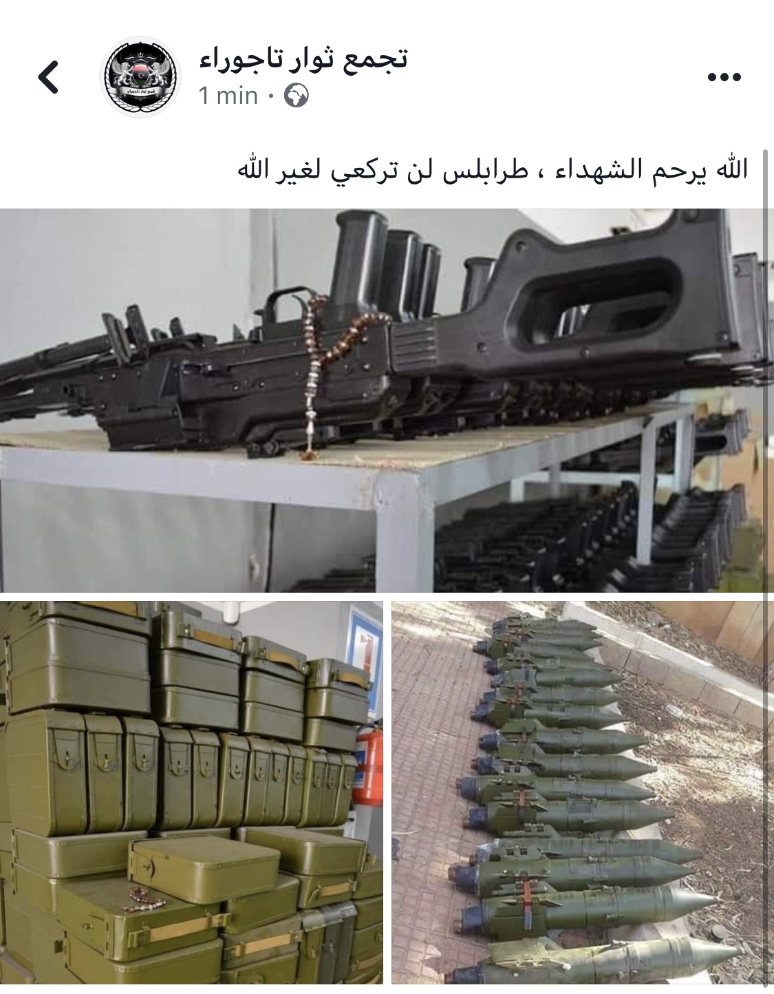 وقد تضمنت أيضاً عدداً من الصواريخ المضادة للدبابات والطائرات إضافة لبنادق قنص ورشاشات أغراض عامة وكميات غير معروفة من الذخائر وقد توزعت هذه الكميات على الكتائب الرئيسية المشاركة في المعارك بما في ذلك لواء الصمود والكتيبة 33 مشاة بقيادة بشير خلف الله الملقب بـ ” البقرة ” وفقاً لما نشره تجمع ثوار تاجوراءء عبر صفحته الرسمية على فيسبوك .