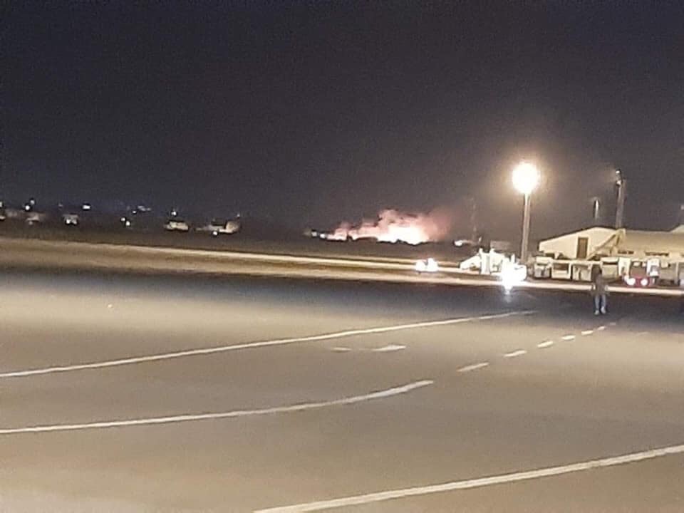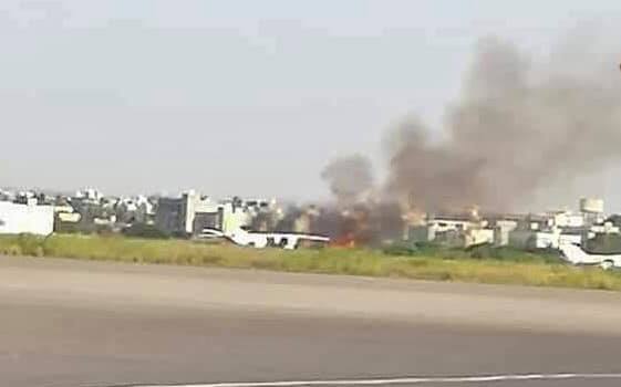 وإرتفعت أعمدة النيران من الجزء الشرقي من القاعدة تزامناً مع هبوط رحلة الخطوط الليبية القادمة من تونس التي أضطر المدني لتحويل مسارها على الفور وبشكل أخاف ركابها نحو مصراتة أسوة برحلة الأجنحة الليبية.