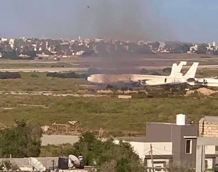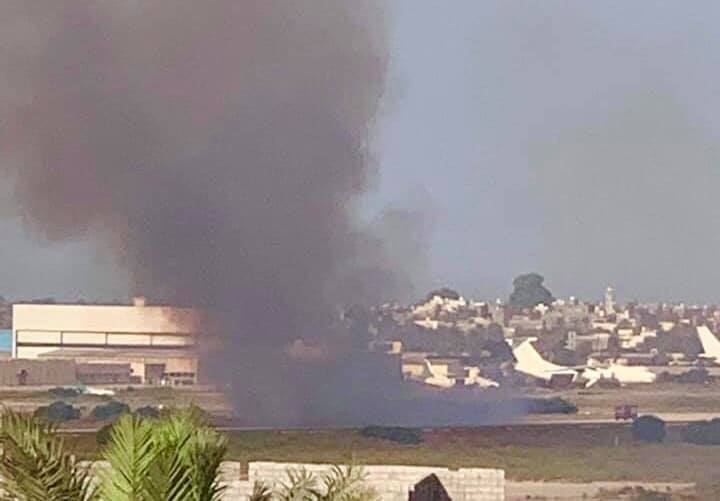 وقد أعقب ذلك الإطلاق إنفجار يرجح بأنه سقوط لقذيفة أدت لإشتعال النيران في الجزء الشرقي من القاعدة العسكرية التي تحولت كمنفذ مدني وحيد بعد تدمير فجر ليبيا لمطار طرابلس سنة 2014 .