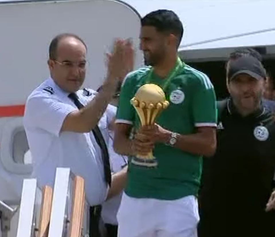 واصطفت الجماهير الجزائرية على جانبي الطريق المؤدي من مطار هواري بومدين إلى وسط الجزائر العاصمة وهم يحملون الأعلام الجزائرية مرددين أغنيات وطنية، وأخرى أعدت خصيصا بمناسبة فوز الجزائر باللقب القاري.