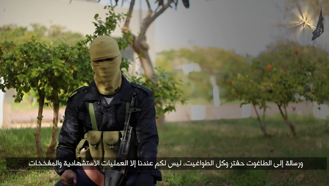 وأضاف بأن ” أبوحمزة التباوي ” هو احد العناصر القيادية الفارة من مدينة سرت التي كان آخر ظهور له فيها شهر سبتمبر 2015 عندما ظهر في إصدار مرئي بثه التنظيم تحت عنوان ” رسالة إلى أخوة التوحيد 2 ” حث خلاله التبو على دعم داعش ضمن مجموعة رسائل بثها في تلك الفترة في إطار سياسة البروبغندا التي كان يتبعها إبان سيطرته على المدينة ومناطق في بنغازي وقد توعد فيه المشير حفتر بالقتال والمفخخات والعمليات الإنتحارية واصفاً إياه بـ ” الطاغوت ” .