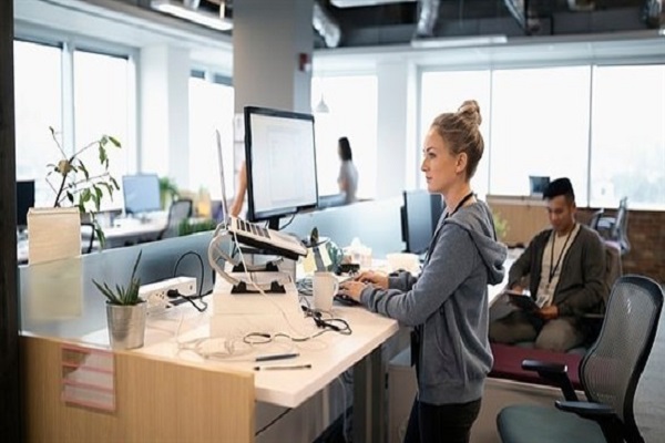 وفي السنوات الأخيرة، تم الترحيب بمكاتب الوقوف باعتبارها علاجاً للأمراض المرتبطة بالجلوس، كما أظهرت الأبحاث أن الوقوف لمدة نصف يوم عمل ساعد على تخفيض ضغط الدم، وتحسين الدورة الدموية وزيادة، الإنتاجية بنسبة 43%.