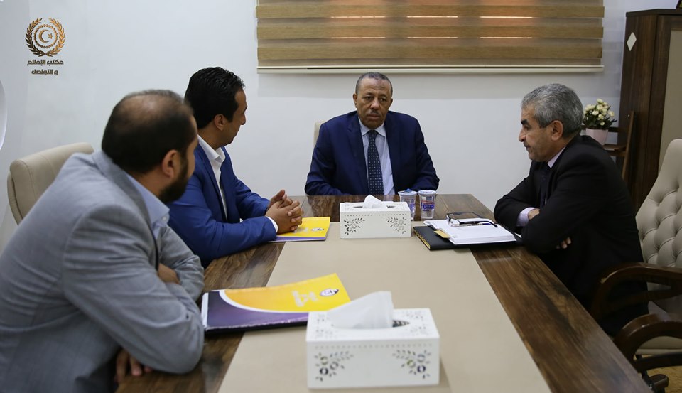 ليبيا – عقد رئيس الحكومة المؤقتة عبدالله الثني اليوم الثلاثاء إجتماعاً مع رئيس اللجنة المركزية للانتخابات جمال عبد الشفيع علي ومقرر اللجنة عبد العزيز محمود بحضور مدير المكتب الخاص لرئيس مجلس الوزراء الطاهر محمد.
