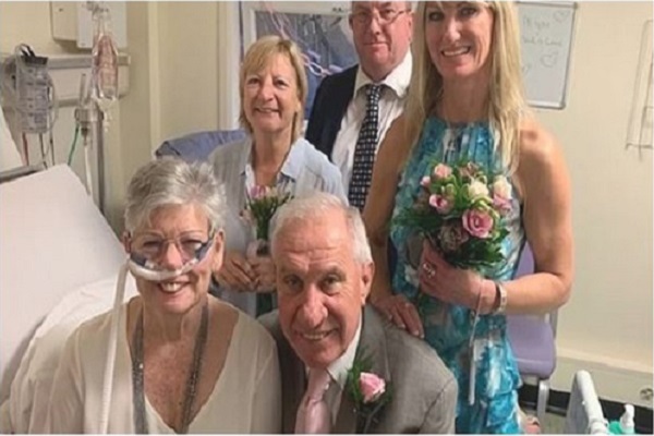 انجلترا – 40 عاما حلم فيه المحبوبان أن يجمع بينهم رباط مقدس، ولكن السنوات الطويلة لم تشاء لهم أن تتم هذه الزيجة إلا داخل إحدى المستشفيات، لتستمر لمدة 8 أيام فقط، حيث قام موظفو مستشفى NHS بتنظيم حفل زفاف كامل في يوم واحد فقط حتى يتسنى للمرأة المصابة بالسرطان الطرفي، الزواج.