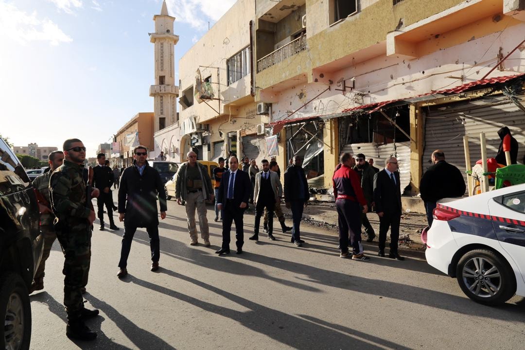 معيتيق إطلع وفقاً لإدارة التواصل والإعلام التابعة للمجلس الرئاسي على الأضرار التي خلفها التفجير الذي وقع في شارع القرضابية بالمدينة واستهدف بعض المحال التجارية ومسجد القرضابية.