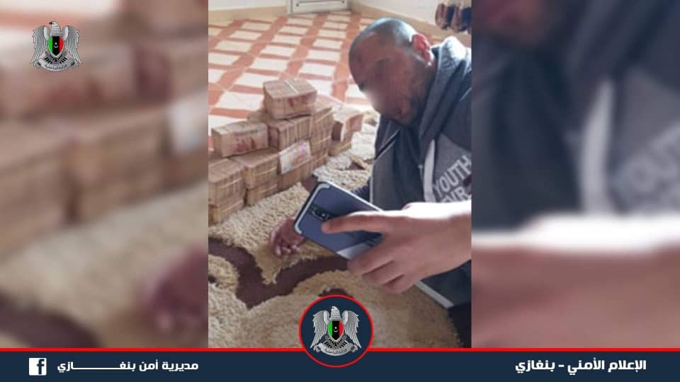 ليبيا – قام قسم البحث الجنائي مديرية أمن بنغــازي بضبط شخصين (الأب وأبنه) لقيامهما بتهريب أموال خارج الدولة لشخص داعشي هارب عن طريق شخص ثالث مصري الجنسية و حيازتهما لأسلحة وذخائر داخل منزلهما.